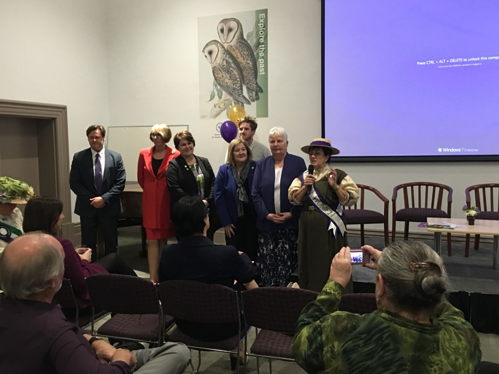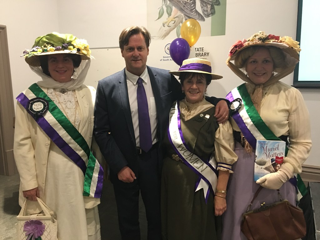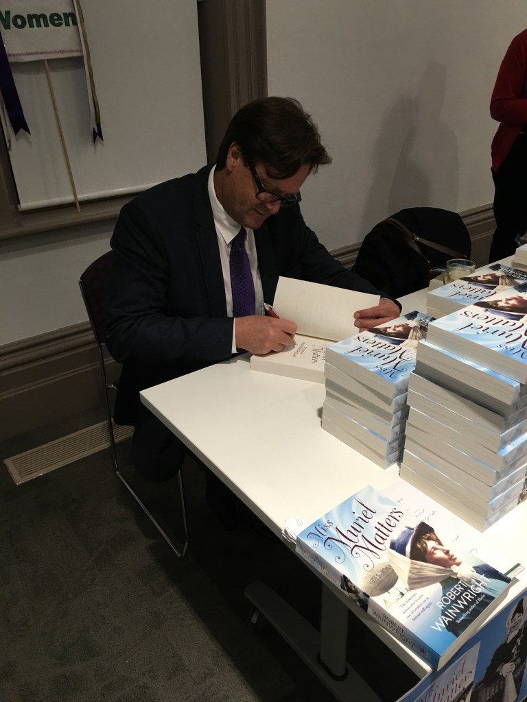 The Muriel Matters Society hosted Robert Wainwright, the author of the biography ‘Miss Muriel Matters’ at the Hetzel Theatre at the State Library of South Australia on Thursday. Members enjoyed a wonderful spread of food and drink throughout the event as the author signed books and mingled with those in attendance. Robert gave a talk about Muriel’s upbringing in Adelaide, her stage career, as well as her agitation for women’s suffrage in Britain. The Society’s Secretary, Frances Bedford MP, was on hand to introduce and conclude proceedings as well as congratulate all those members who helped contribute to the research that appears in the book. We wish Robert well as he continues to promote the book throughout Australia. Thanks for all those members who donated their time to help get the space ready and tidying up afterwards!