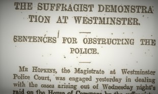 Mr Hopkins, the Magistrate at Westminster Police Court, was engaged yesterday in dealing with the cases arising out of Wednesday night’s raid on the House of Commons by the suffragists. There were fifteen defendants – one man and fourteen women, the latter being members of the Women’s Freedom League. Little interest was taken in proceedings by the general public, those seeking admission to the Court chiefly comprising the officials of the League and a few of the members.