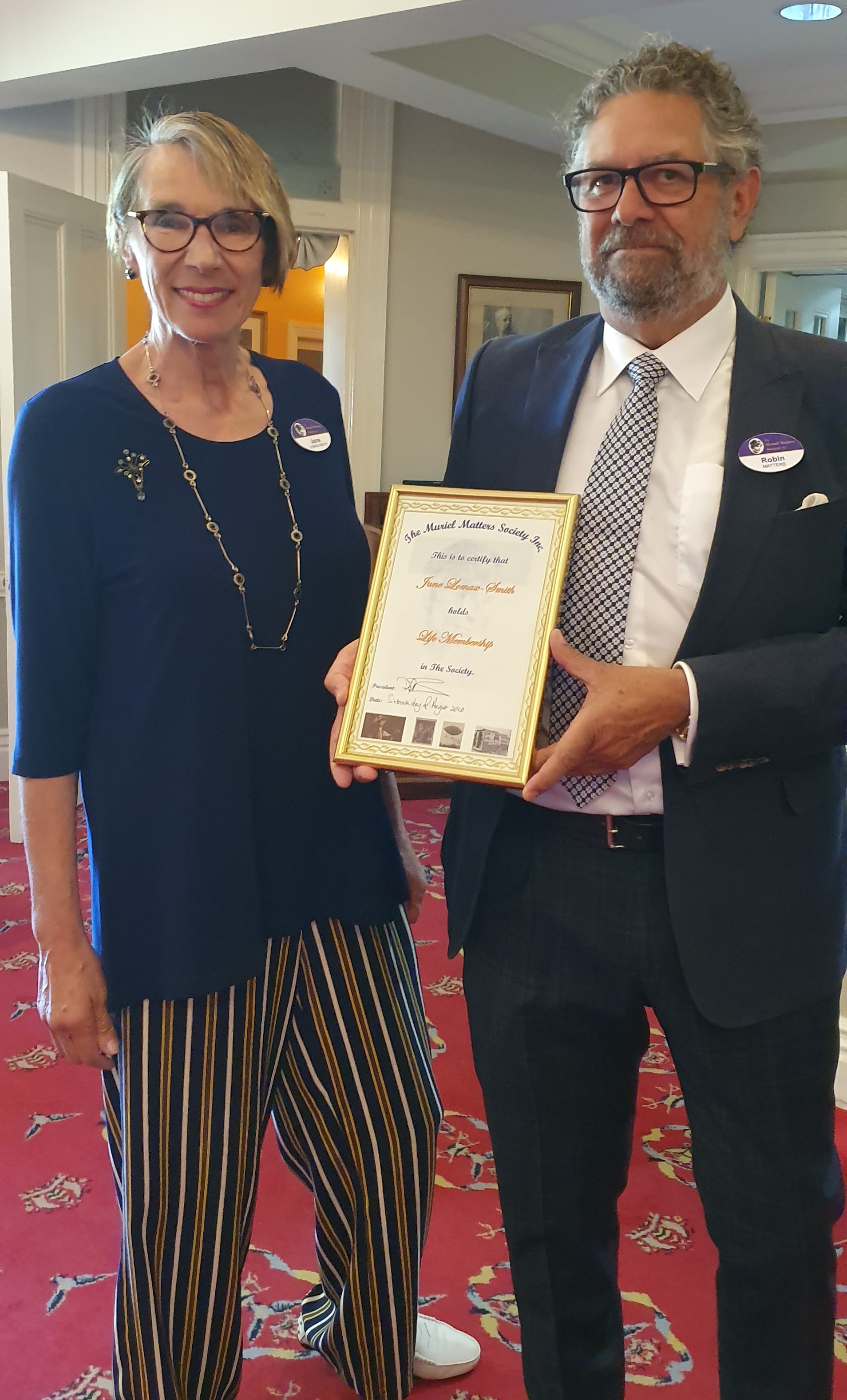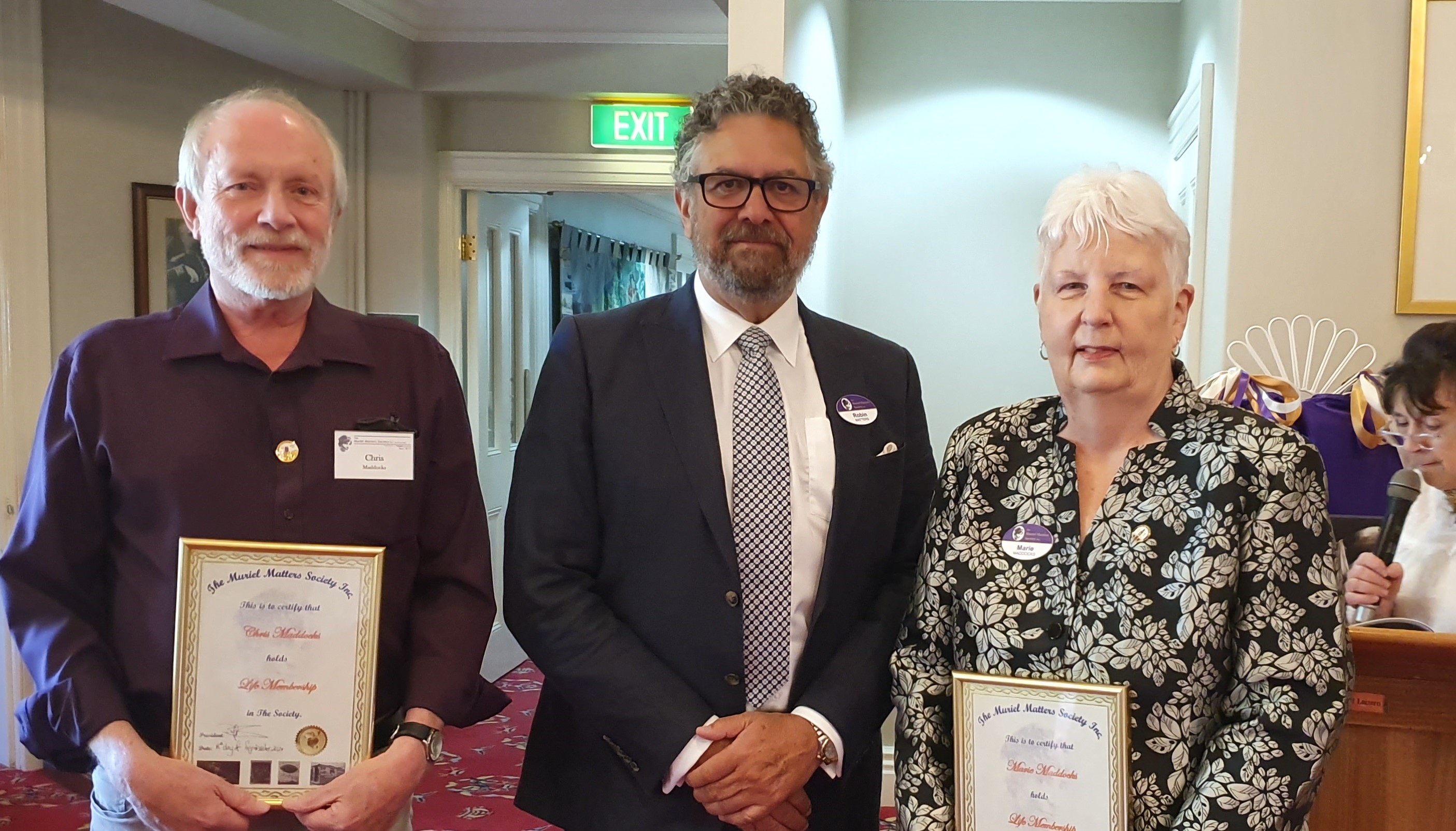 Longstanding friends of The Society, Marie and Chris Maddocks, became life members. The President of The Society, Robin Matters, was on hand to present them with their certificates. Congrats Marie and Chris!